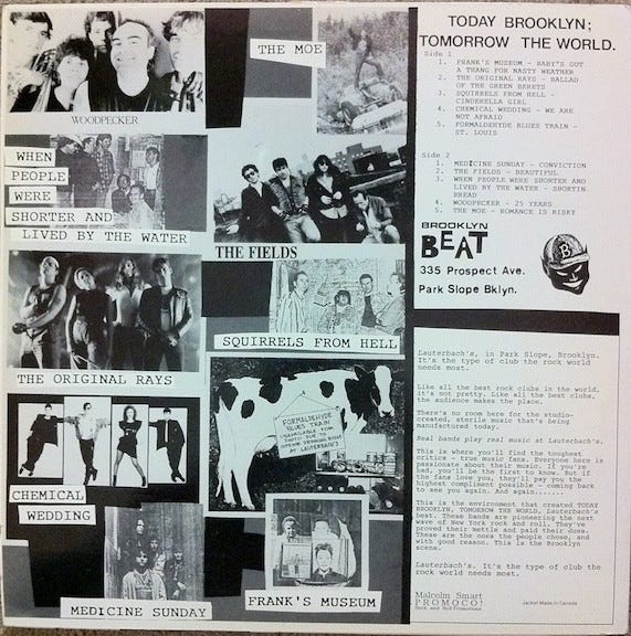 Like everything in this good city, things weren’t always so quaint. The center of “the Brooklyn Beat” was Lauterbach’s: a grimy greasy dive where “real bands play real music.” Current Slopers would probably turn their nose up at the place on their way towards a glass of natural wine. The bands that played Lauterbach’s would in modern times fall victim to noise ordinances, as the New York Times once wrote of their sound as: